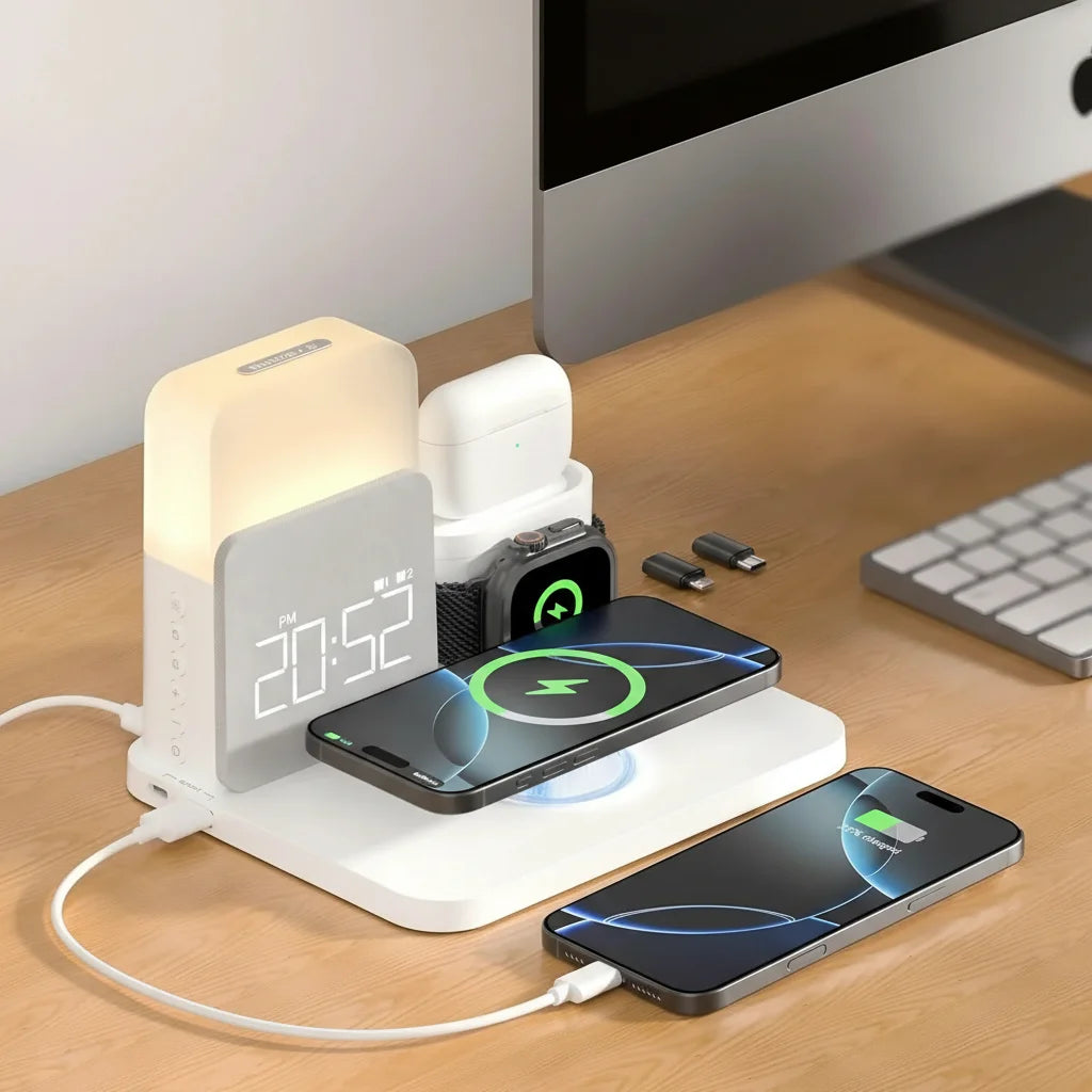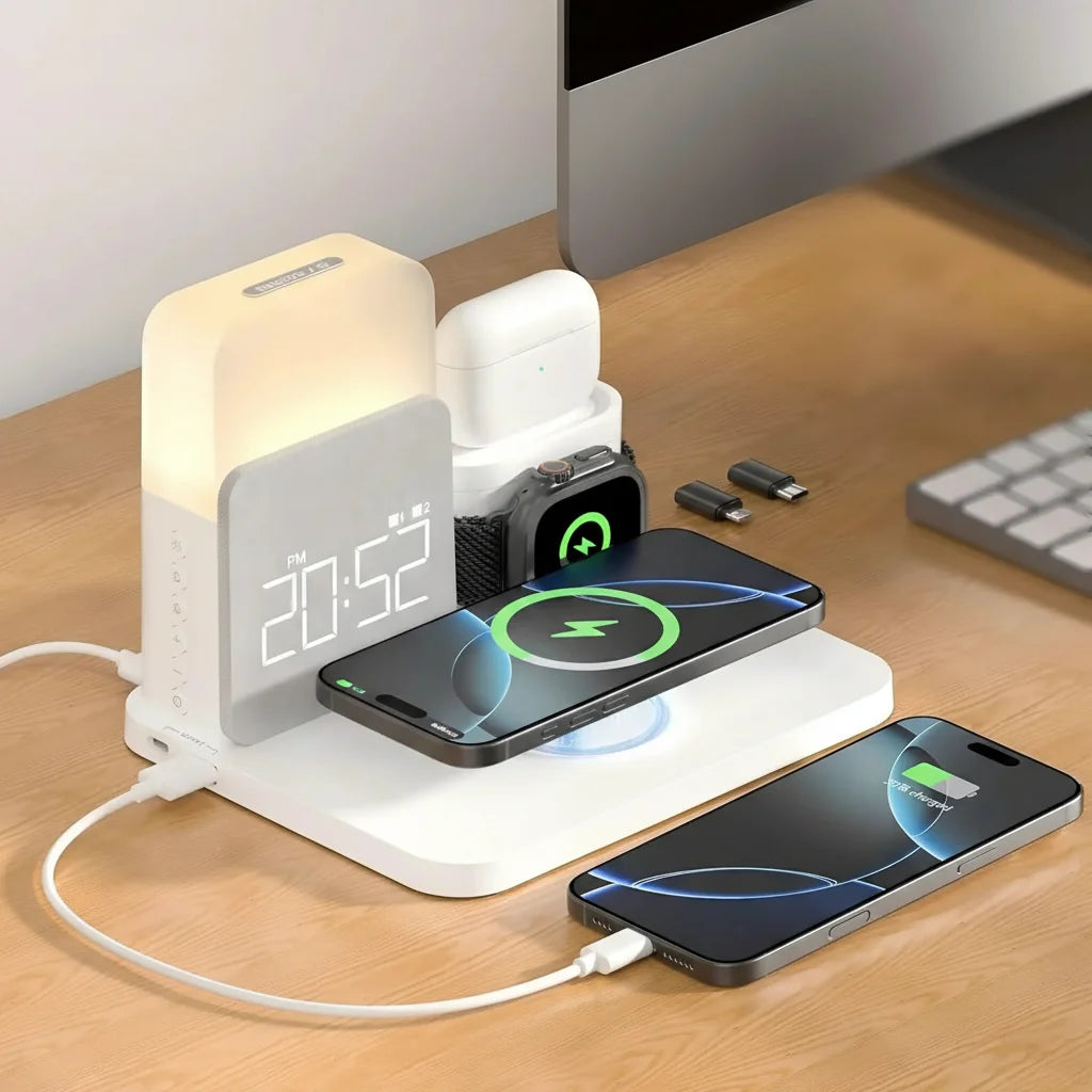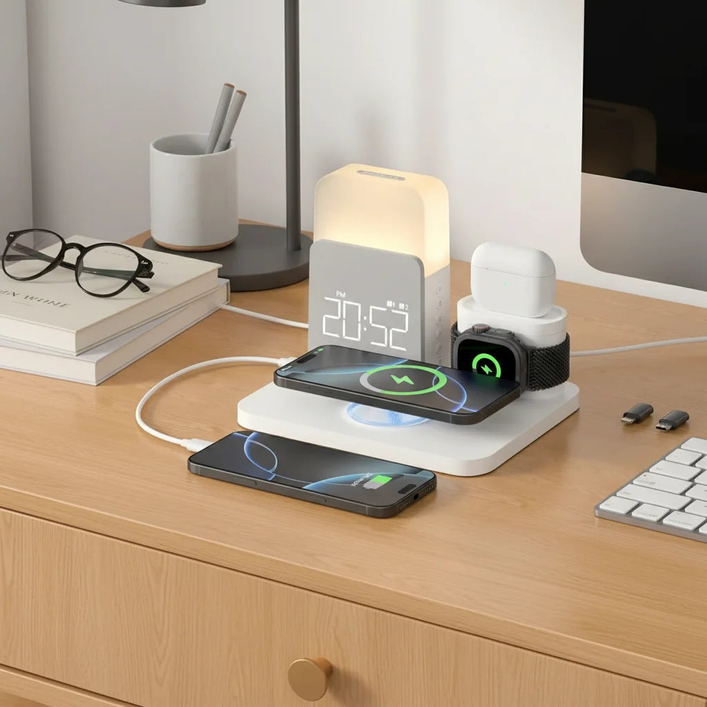 The AuraCharge Pro is engineered to be compact and organized, making it ideal for decluttering your desk or bedside table. Enjoy a tidy space with all your essential devices neatly powered.